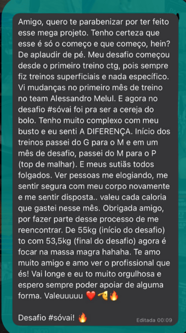 Boas-vindas! Quer você esteja começando agora ou buscando a chance de voltar aos treinos, o "Só Vai! 3" é a estrutura ideal para iniciar seu acompanhamento comigo e garantir foco total por 30 dias.